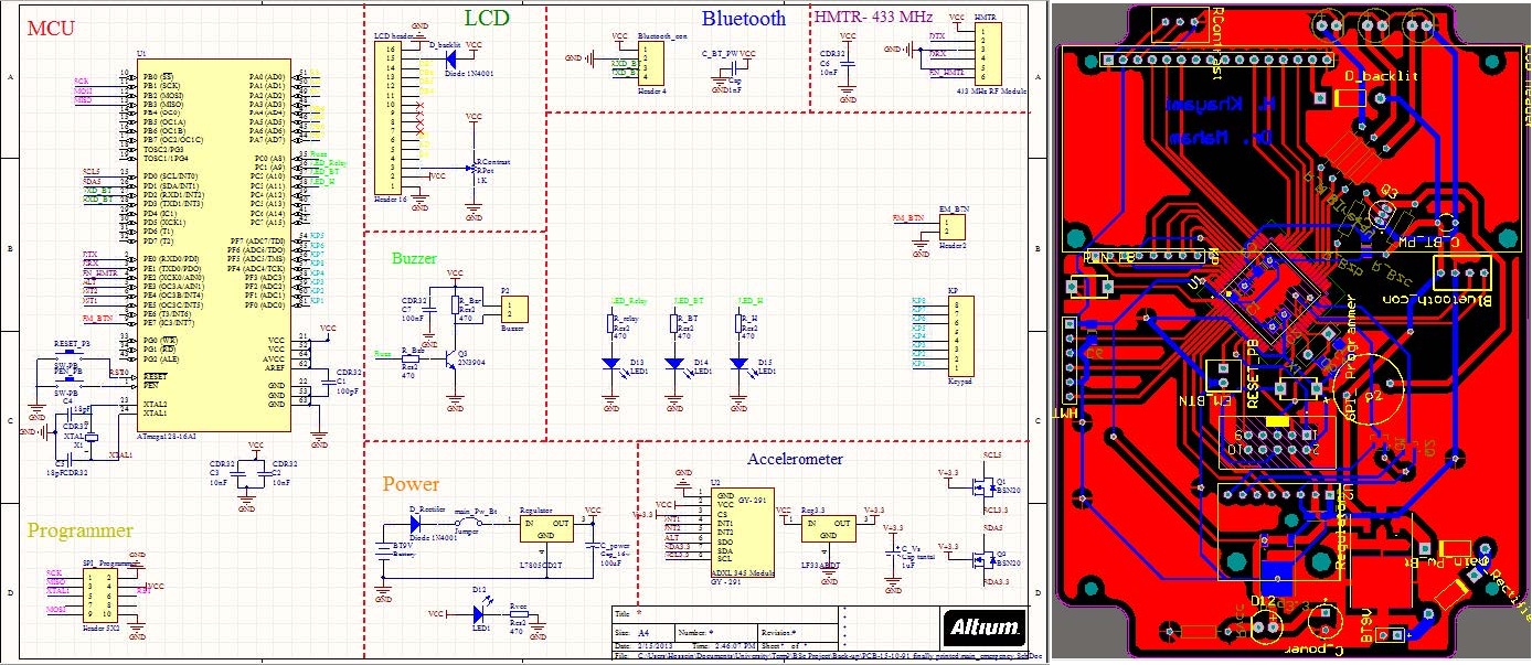 - Schematic and PCB: a custom schematic and board integrate MCU, RF modules, accelerometer, power circuitry, and connectors in a compact design suitable for installation in buildings.